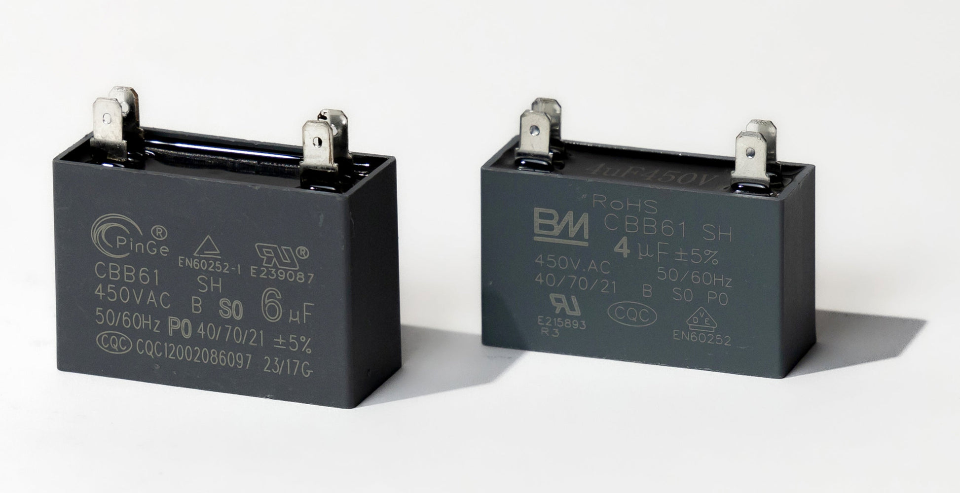 Professional capacitors for ceiling fan, wall fan, stand fan, small single phase motors, great replacement for most home fans’ capacitors. CBB61(A)-450VAC-2.5 UF+5%(B).
